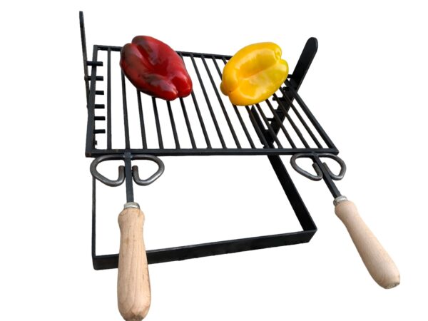GRIGLIA PER BARBECUE CON 2 IMPUGNATURE CON MANICI IN LEGNO