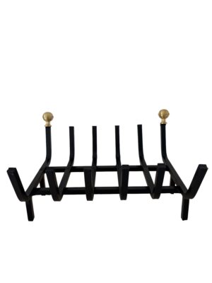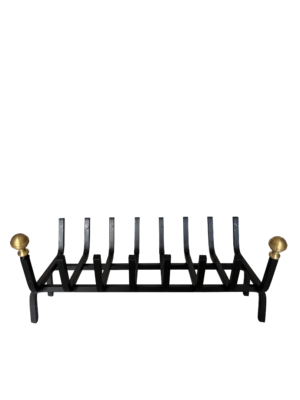 BRUCIALEGNA ANGOLARE CON POMELLI IN OTTONE IN FERRO BATTUTO VERNICIATO 40 CM Griglia brucialegna in ferro battuto massiccio di colore nero da posizionare nei caminetti ad angolo. Realizzato in solide barre da 12×12 mm di ferro battuto per garantire robustezza e stabilità. Tenendo la legna sollevata, serve a facilitare l’accensione della fiamma sul caminetto…